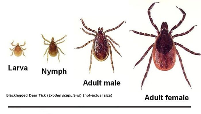 Forme larve i nimfe vrlo su maleni i oku nevidljivi tako da osoba rijetko kada može primjetiti infekciju. Krpelji često boravite u vlasištu ili na preponama prije nego se spuste na mjesto hranjena, najčešće noću.