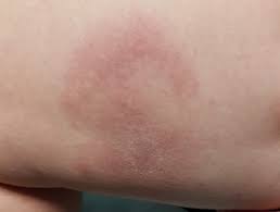 Jedan od slabih pokazatelja primarne infekcije boreliozom koji se javlja u oko 0,5 % slučajeva je crvenilo, Erithema migrans, koja započinje kao crvena makula ili papula, a zatim može ali i ne mora širiti, ponekad sa centralnim izbjeljivanjem. Najčešće se pojavljuje kod već prije zaraženih osoba zbog reakcije imunološkog sustava na bakteriju. Erythema migrans javlja se od 3 do 31 dan nakon ugriza zaraženog krpelja, međutim kod većine pacijenata izostaje kao siguran klinički simptom.